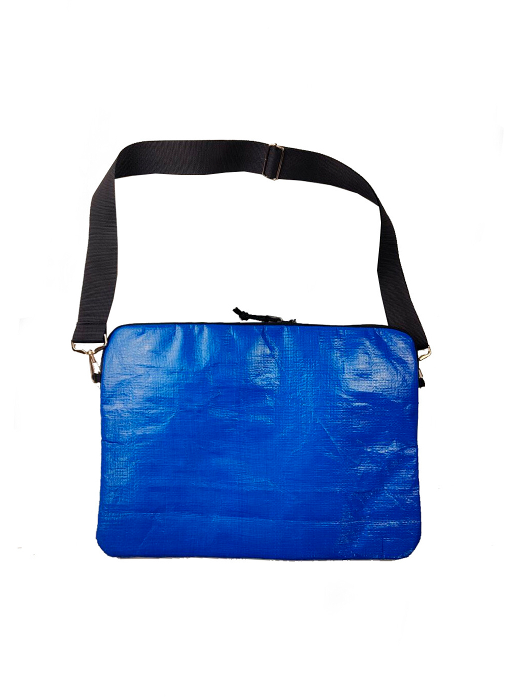 Состав: старые сумки-баулы, с одной стороны синего цвета, с другой — черного, подклад из тканевого рекламного полотна