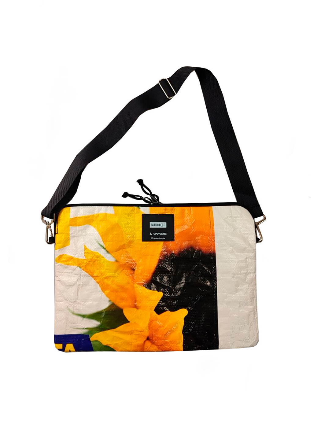 Состав: старые тенты и обрезки с производства тентов, подклад из тканевого рекламного полотна. Цвет подклада рандомный, примеры — в карточке товара