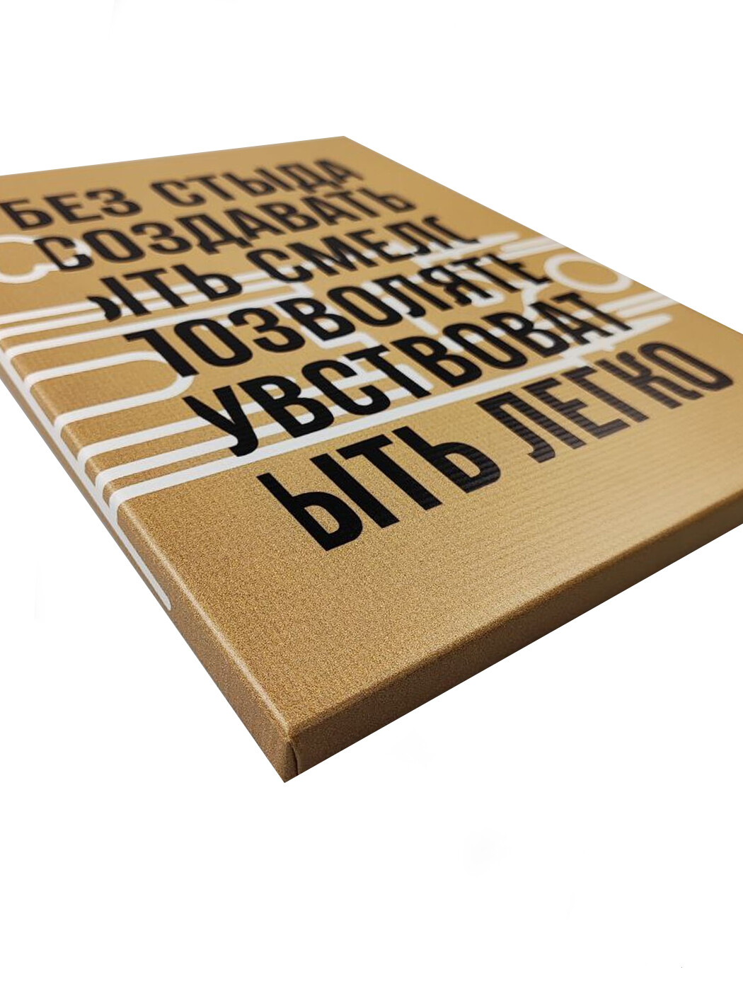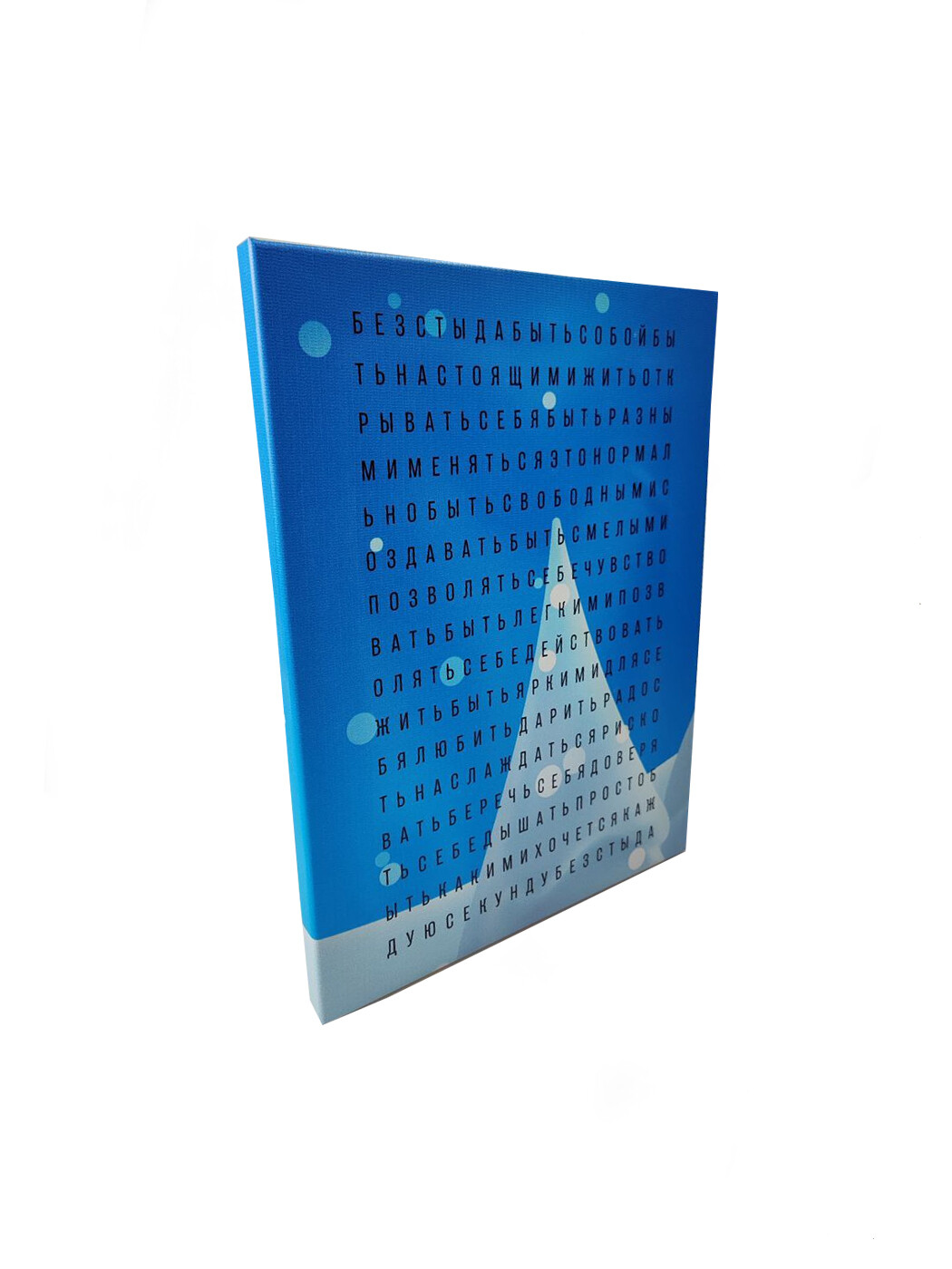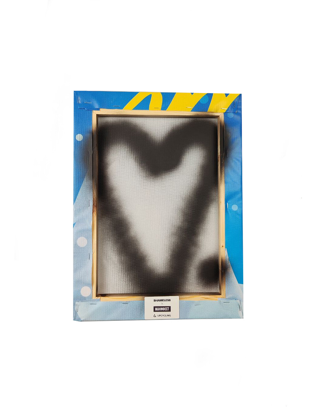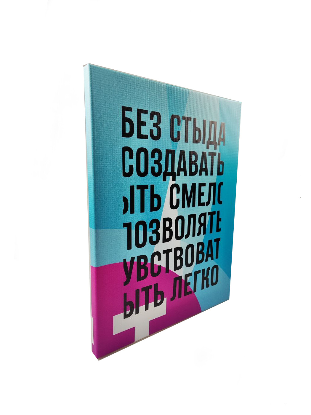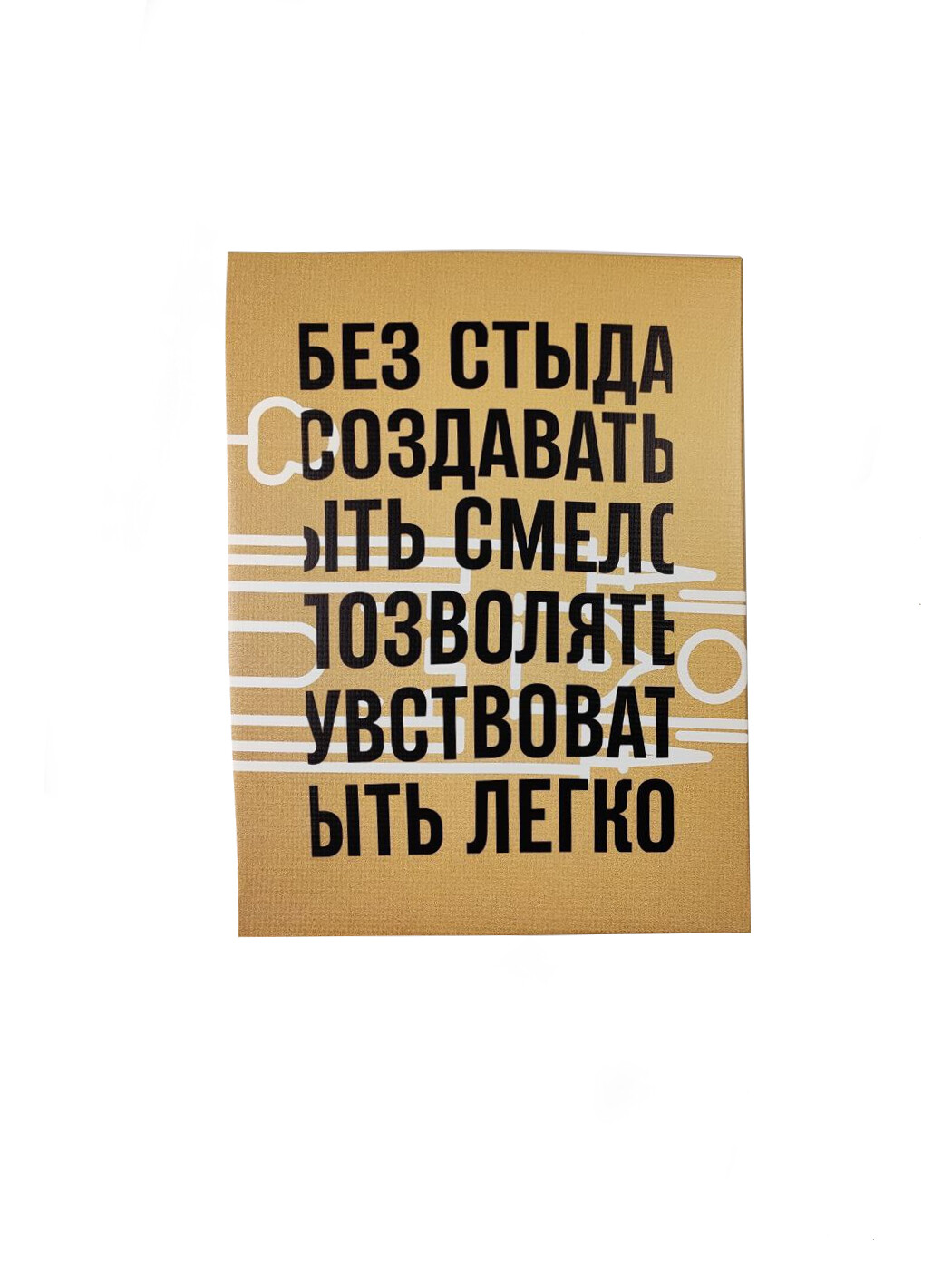 Текст на холсте — манифест бренда «SHAMELESS» как напоминание любить всем сердцем, показывать то, что глубоко внутри, уметь радоваться жизни даже в самые трудные моменты, верить, что в каждом из нас и так достаточно для счастья.