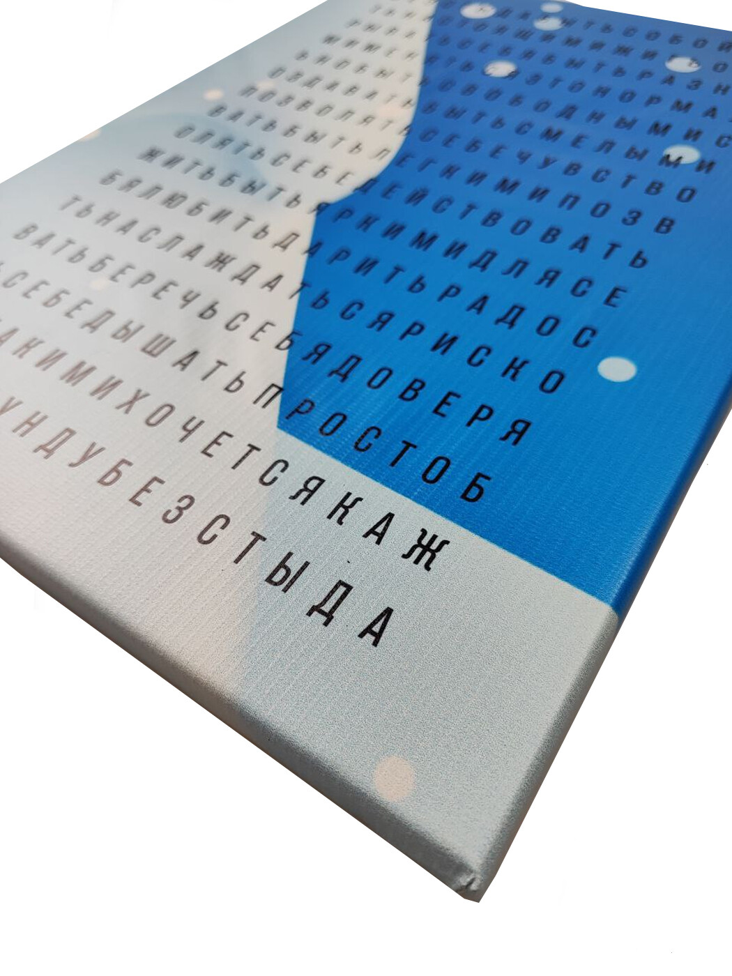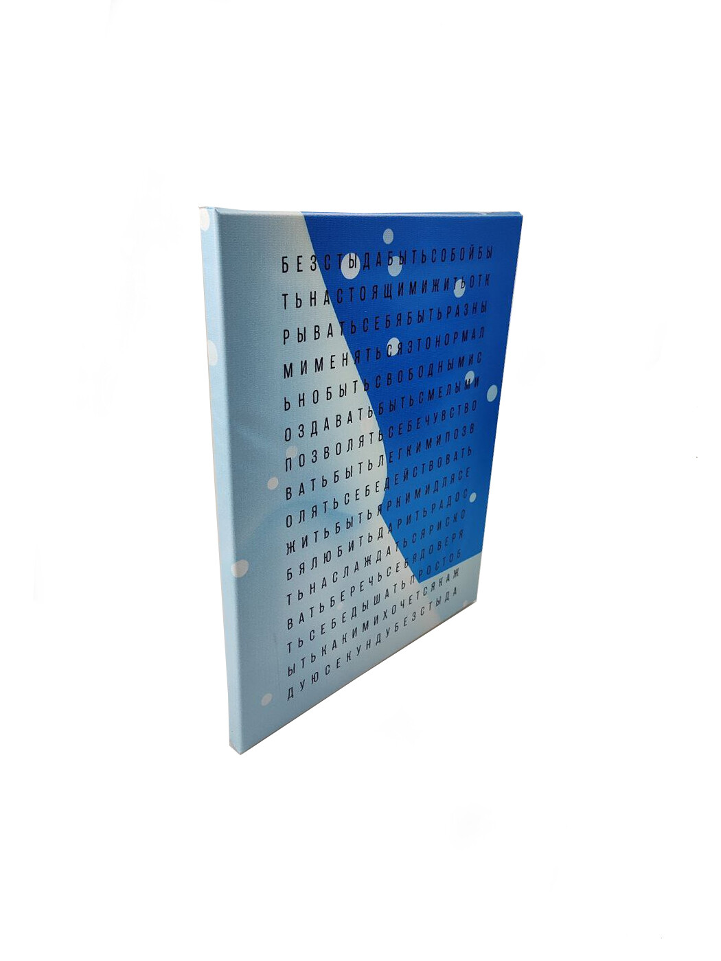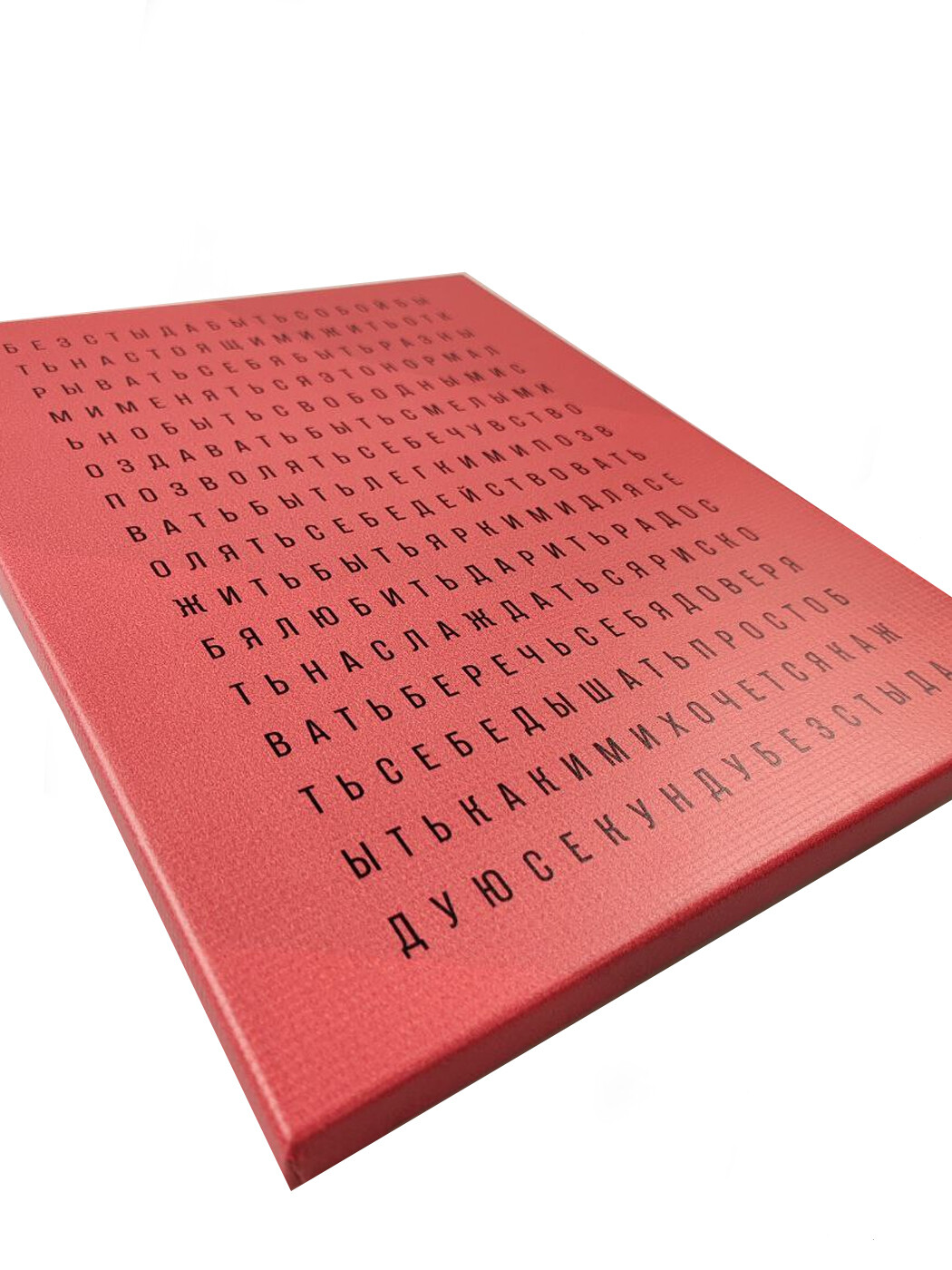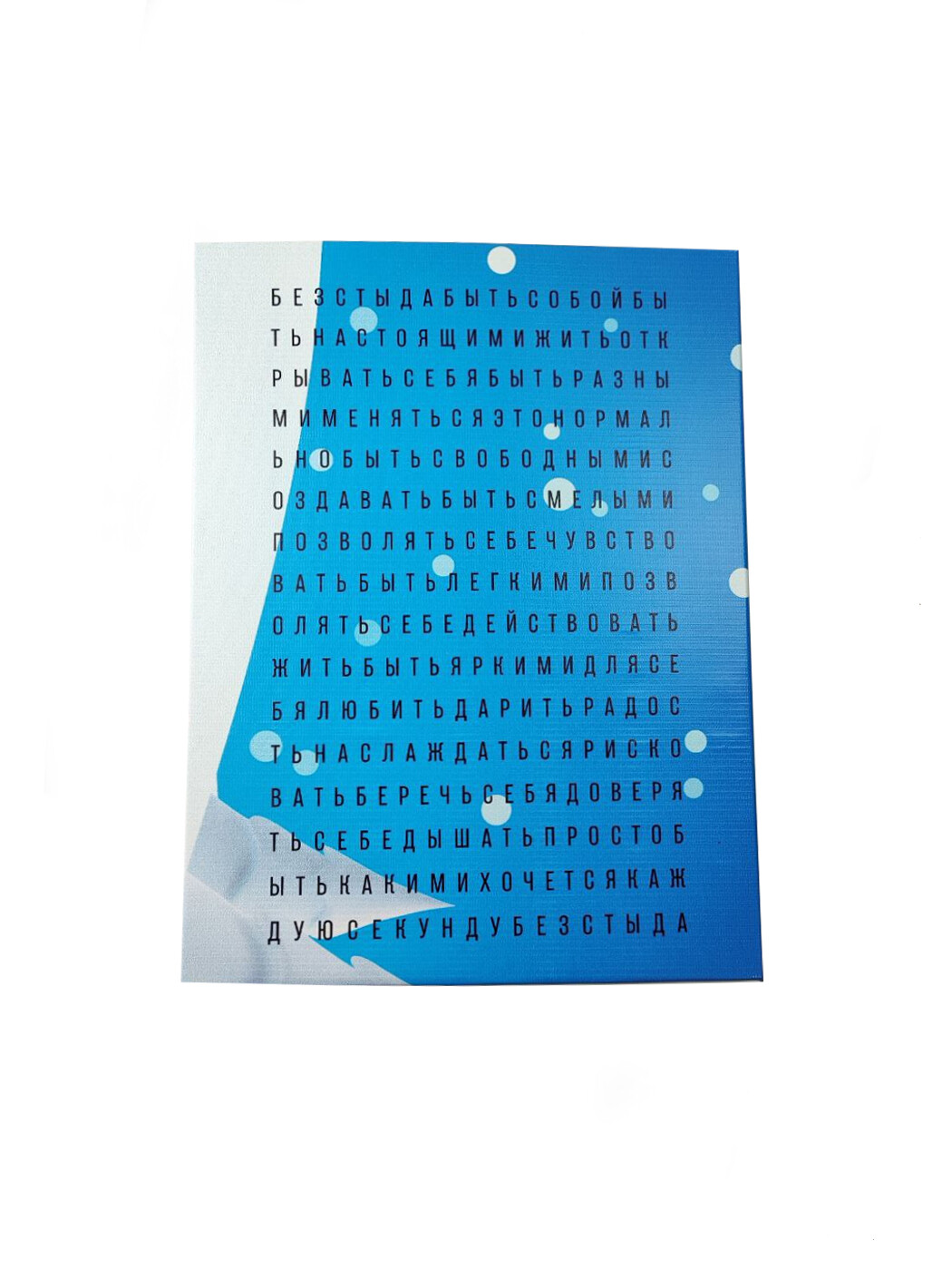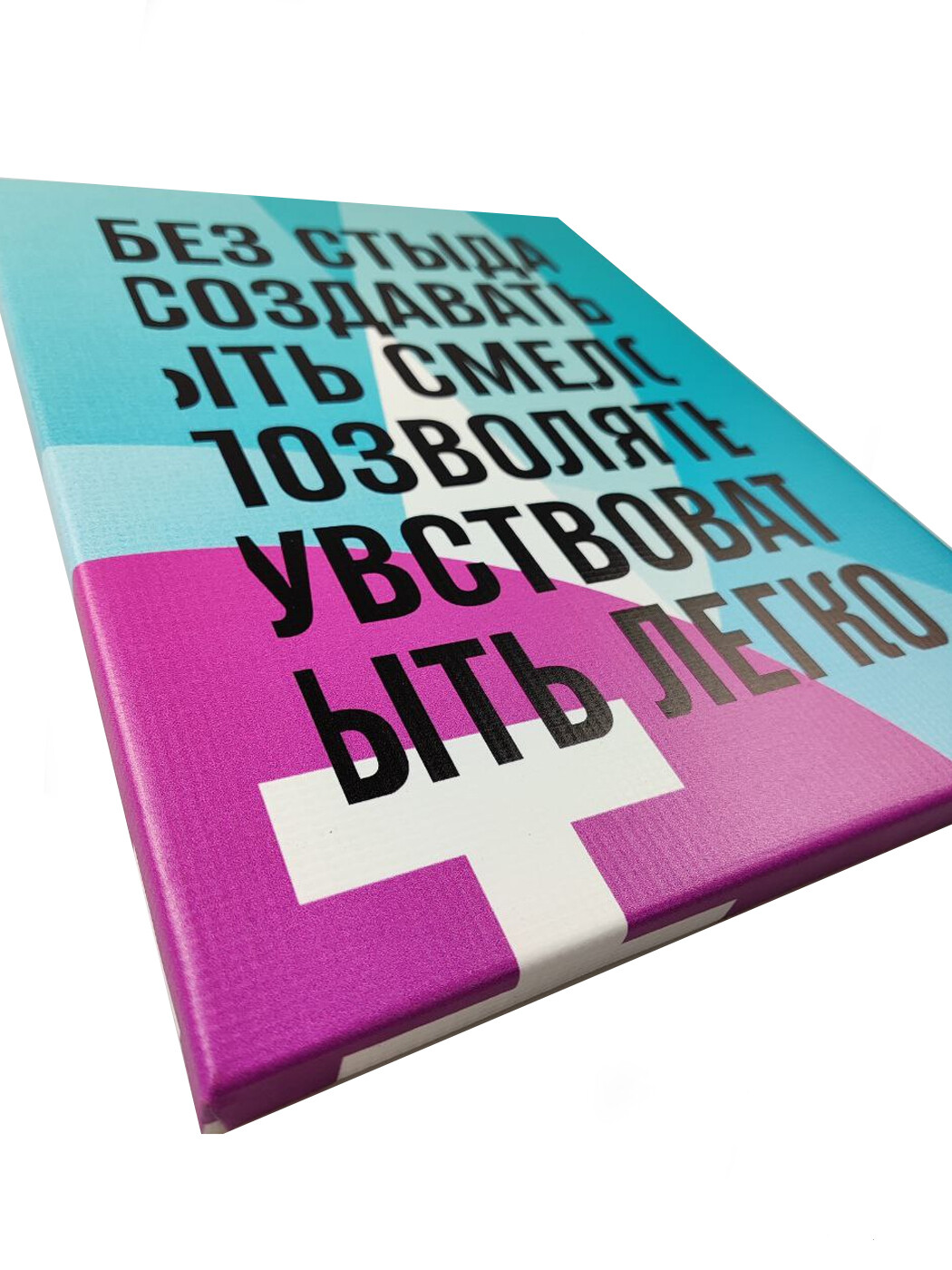 Текст на холсте — манифест бренда «SHAMELESS» как напоминание любить всем сердцем, показывать то, что глубоко внутри, уметь радоваться жизни даже в самые трудные моменты, верить, что в каждом из нас и так достаточно для счастья.